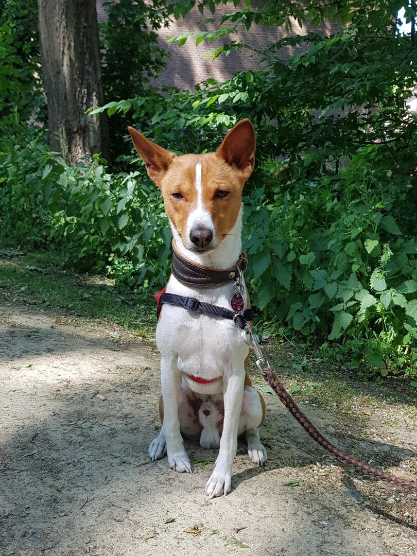 Leinenspaziergänge an kurzer Leine (ca. 1 – 1,50 m lang) mit Übungen zum Grundgehorsam.